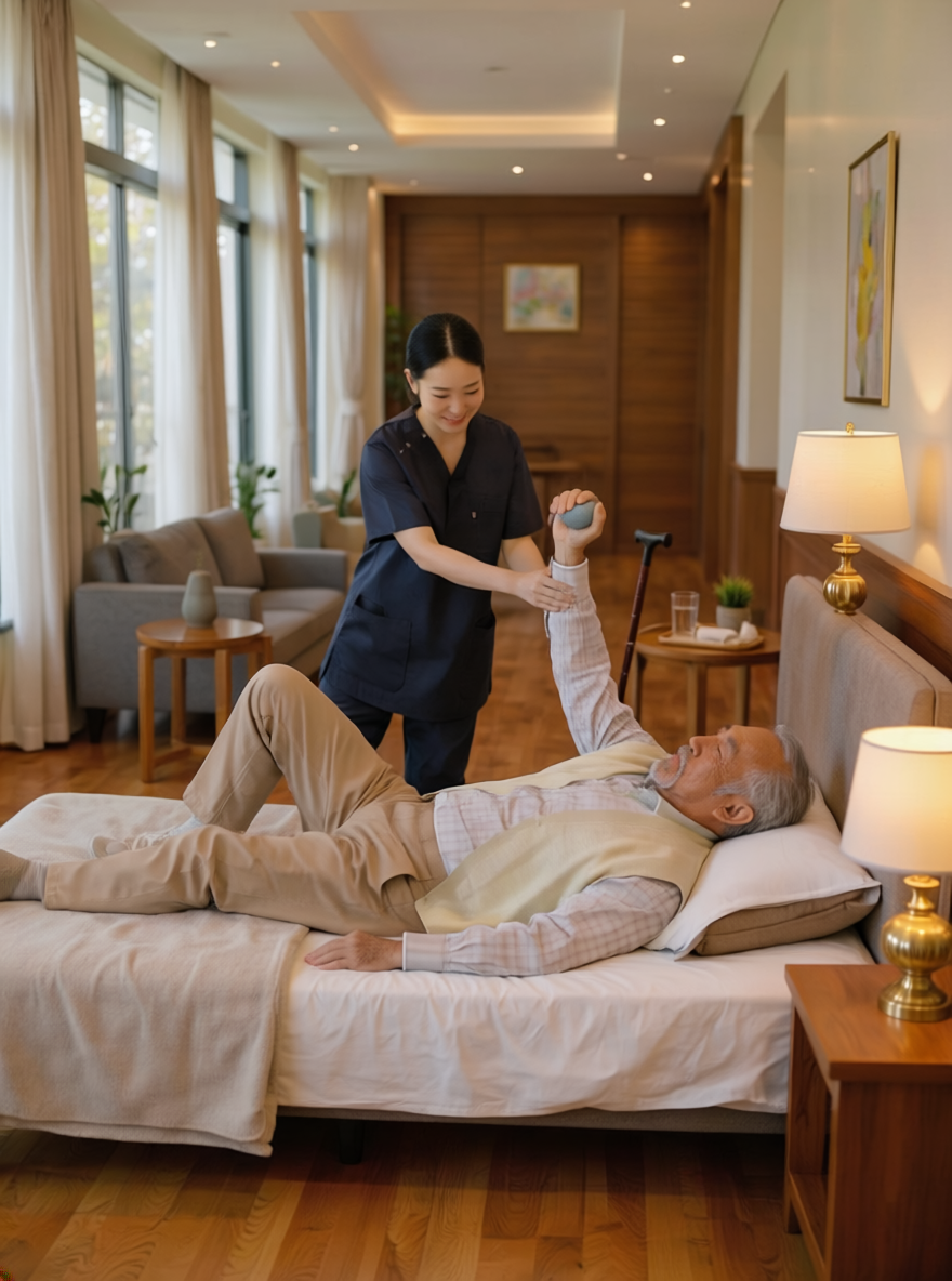 リハビリでは、お一人おひとりの症状に合わせた自主的に行える運動や、ご家族様への介助方法のアドバイスも行なっています。
