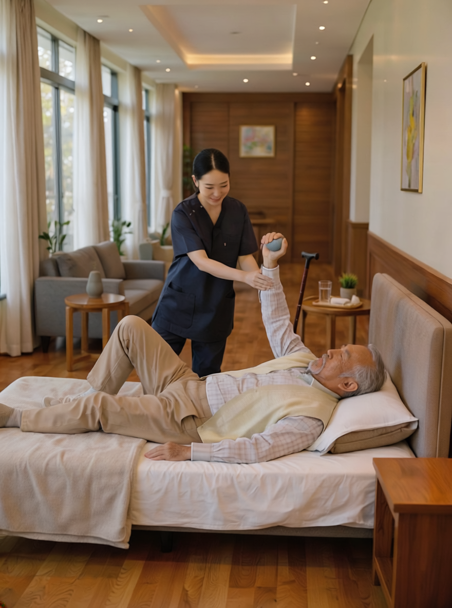 リハビリでは、お一人おひとりの症状に合わせた自主的に行える運動や、ご家族様への介助方法のアドバイスも行なっています。